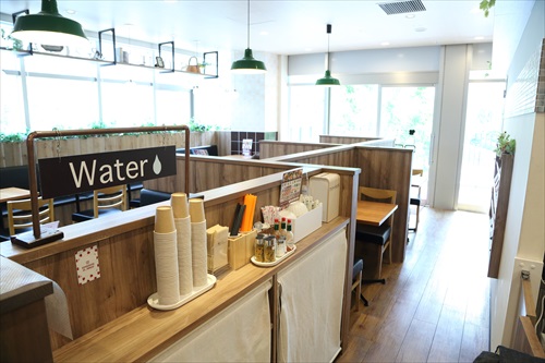 大きな窓が開放的な店内は、ナチュラルな木のぬくもりとブラックシートでスタイリッシュな空間に。おひとり様での寛ぎタイムや女子会、ママ会、歓送迎会など、幅広いシーンでご利用いただけます。全席禁煙です。