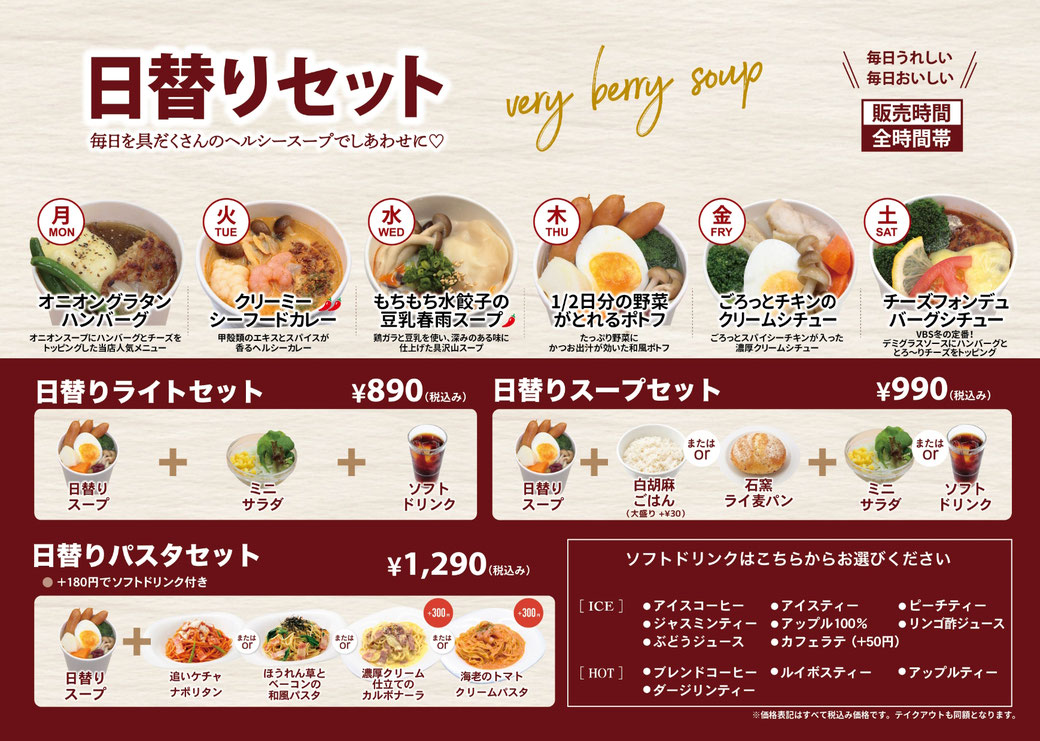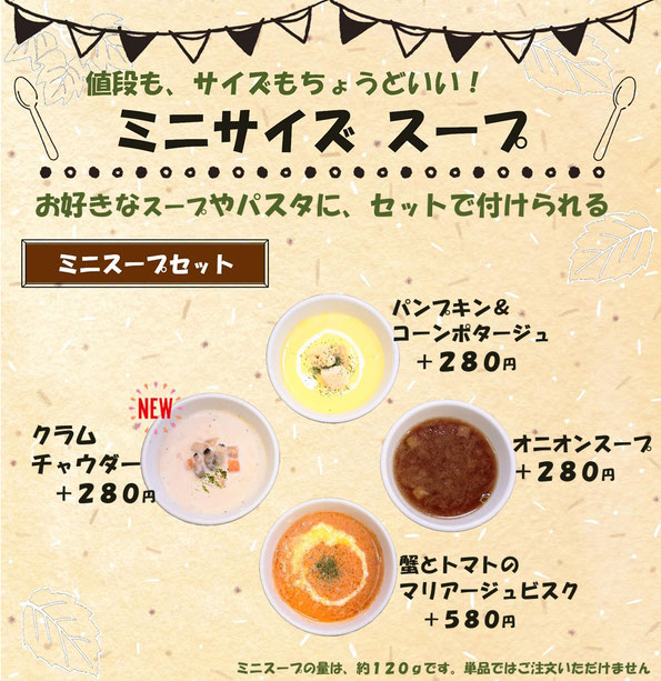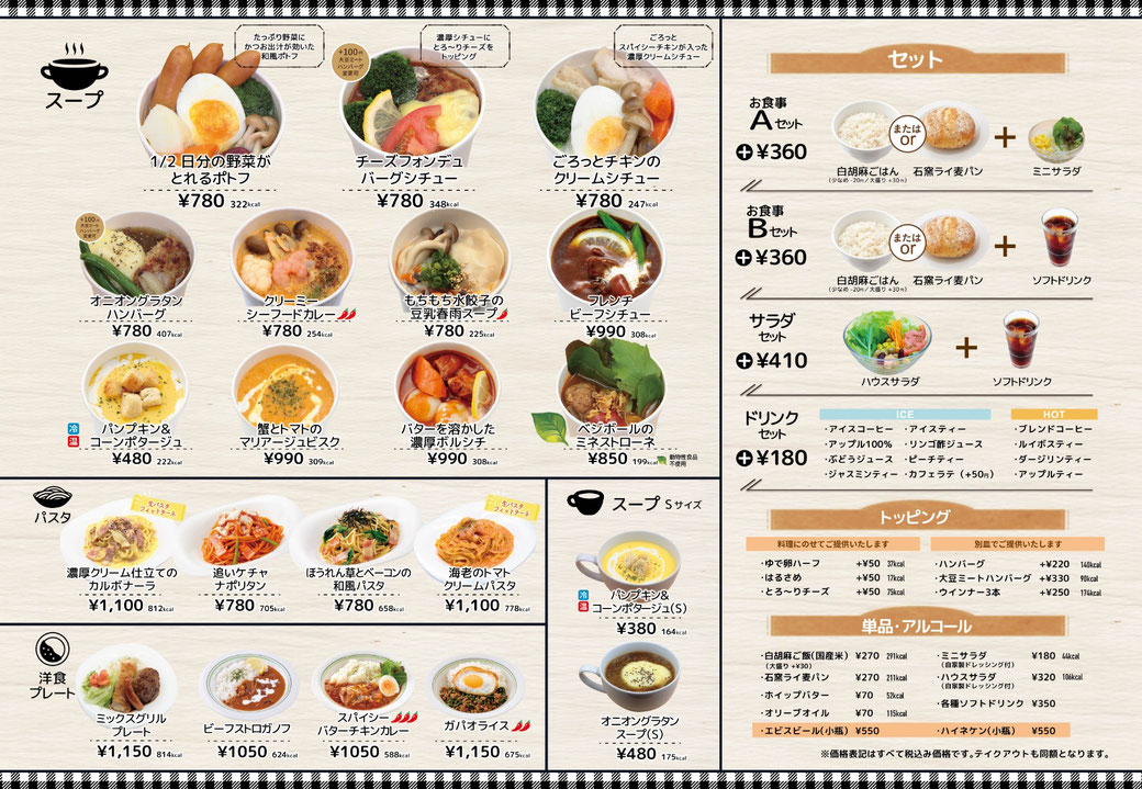 スープ・パスタ・ワンプレート・サイドメニュー・セットメニュー